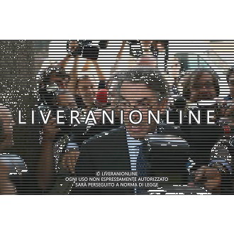 NELLA FOTO ALAIN DELON CON MIRELLE DARC ALL'IPPODROMO DI MILANO NELL'ANNO 1974