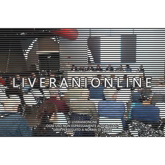 15-9-2024. Cagliari calcio-S.S.Napoli 4° Giornata Campionato Italiano Serie A 2024/2025, stadio Unipol Domus Cagliari. Foto Salvatore Moi/Agenzia Aldo Liverani s.as. Nella foto: polizia sotto la curva dei tifosi dopo gli scontri, partita interrotta per 7 minuti ©MOI SALVATORE/AGENZIA ALDO LIVERANI SAS