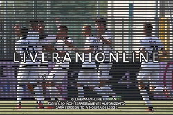TVEM Stefan de Vrij of FC Inter celebrates after scoring a goal with teammates during the Italian soccer Serie A match Lecce vs Inter on February 25, 2024 at Via del Mare Stadium in Lecce, Italy. Photo by Emmanuele Mastrodonato/agenzia Liverani