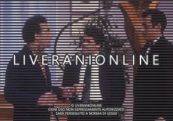 SERIE TELEVISIVA “ VICINI DI CASA“ 1991 NELLA FOTO GENE GNOCCHI CON ALBERICO EVANI E TEO TEOCOLI AG ALDO LIVERANI SAS
